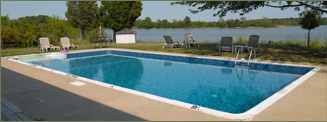 The 18'0" x 36'0" newly relined pool sits at the point of the property so our guests can be in the pool and watch the water at the same time.(All recreational activities involving the pool or the creek are at your own risk, a parent or responsible adult must be present at all times).